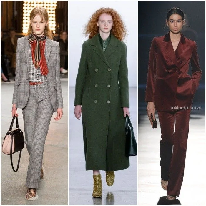 En las propuesta mas elegantes y formales para el dia se impone la sastrería. Predominan las superposiciones y los atuendos con enfoque intelectual. Sobresalen los abrigos Crombie de estilo retro, lisos o con cuadros , texturas rasgadas y botones dobles.