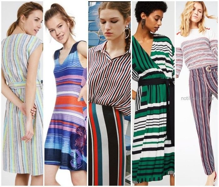 Rayas multicolores: rayas de todos los anchos y todos los colores se combinan en estampas explosivas.